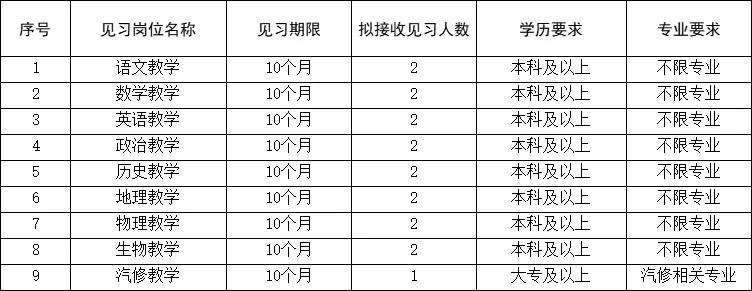 崗位類別:本次提供教育教學見習崗位。具體如下: