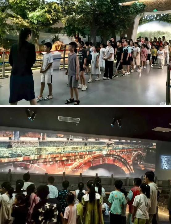 第二站到達(dá)市博物館,孩子們跟隨講解員依次步入各個(gè)展廳,仿佛穿越回九千年前,他們一邊仔細(xì)端詳這些珍貴文物,一邊輕聲交流著內(nèi)心的震撼,透過一幅幅歷史圖片、一段段文字介紹、一件件實(shí)物展品,逐步梳理漯河從新石器時(shí)代早期文化到近現(xiàn)代文明的發(fā)展脈絡(luò),深刻觸摸家鄉(xiāng)的文化根脈。