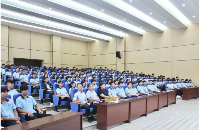 9月9日,漯河技師學(xué)院院長馮凱在潤德樓308報告廳以《技能照亮前程,勞模工匠領(lǐng)航》為題,為2025秋季新生講授“開學(xué)第一課”,以有高度、有深度、有情懷、有溫度的思想政治理論課形式,點燃漯技學(xué)子逐夢技能的報國熱情?;顒佑蓪W(xué)院黨委副書記范偉鋒主持。
