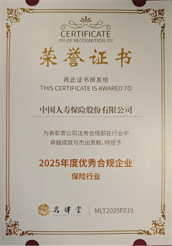 近日,在國(guó)內(nèi)法律行業(yè)交流平臺(tái)名律堂組織的“2025年企業(yè)合規(guī)先鋒榜”評(píng)選項(xiàng)目中,中國(guó)人壽保險(xiǎn)股份有限公司(以下簡(jiǎn)稱(chēng)“中國(guó)人壽”,股票代碼:601628.SH,2628.HK)榮膺保險(xiǎn)行業(yè)“2025年度優(yōu)秀合規(guī)企業(yè)”。