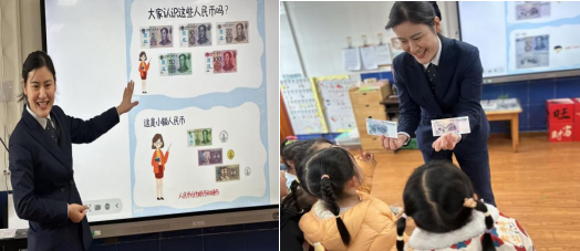 通過家長進(jìn)課堂集體活動幫助孩子們認(rèn)識錢幣。家長準(zhǔn)備了各種面額的紙幣和硬幣,讓孩子們觀察它們的圖案、顏色和數(shù)字,了解不同面額的價值。通過“換錢游戲”和“模擬購物”,孩子們在輕松愉快的氛圍中掌握了基本的錢幣知識。