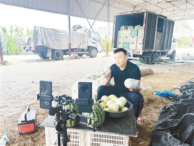“這種甜瓜在地里長100多天成熟,瓜皮和瓜瓤都能吃,喜歡的可以下單了……”7月20日中午,臨潁縣石橋鄉(xiāng)王莊村黨支部書記方永杰正在直播賣甜瓜、冬瓜、西瓜。樸實(shí)又充滿激情的直播,一開始便吸引很多老客戶和周邊群眾的關(guān)注,一小時賣掉2000多斤瓜。