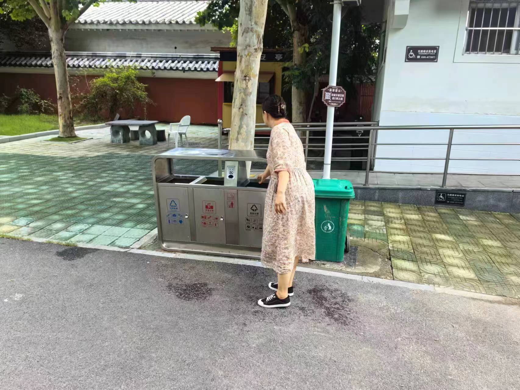 7月20日,許慎文化園,游客撿垃圾的文明行為。