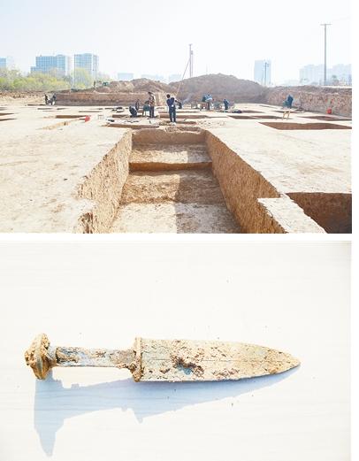 記者了解到,該古墓群在平漯周高速鐵路建設(shè)中被發(fā)現(xiàn),目前已發(fā)掘古墓200多座,出土有青銅劍、青銅匕首等戰(zhàn)國(guó)時(shí)期的青銅器及漢代的陶器、鐵器和玉器等文物千余件。
