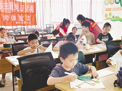 隨后,記者來(lái)到建西社區(qū)。大學(xué)生志愿者韓卓穎正給孩子們上美術(shù)課。孩子們拿起水彩筆,充分發(fā)揮想象力,在紙上畫出自己眼中的多彩世界。
