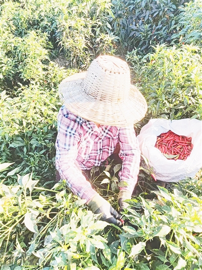 辣椒種植基地不僅讓該村村民增收,還為附近村莊的村民提供了在“家門口”就業(yè)的機會。從土地平整、栽秧到如今的采摘分揀,西軍王村及附近村莊的40多名村民在基地務工。“摘1公斤辣椒掙1塊錢。俺一天能摘70公斤,照顧老人和賺錢兩不誤。”正在摘辣椒的村民張秀琴高興地說。