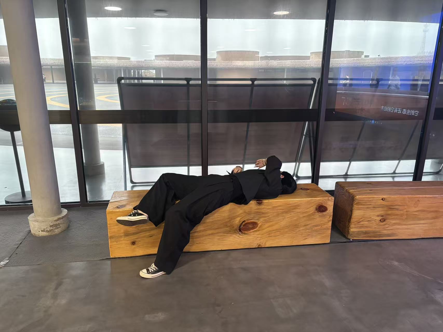 賈湖遺址博物館 有游客躺長(zhǎng)椅行為