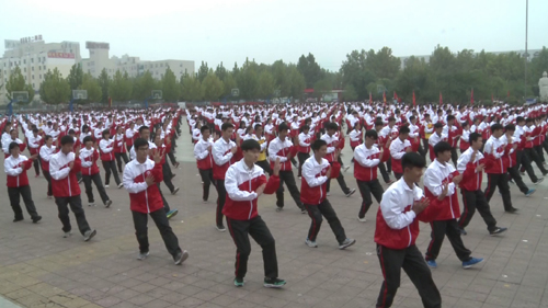 當(dāng)天上午9時(shí)許,展演開(kāi)始,漯河四高的2000名學(xué)子身穿校服,伴隨著激昂的音樂(lè),開(kāi)始練習(xí)心意六合拳。他們動(dòng)作整齊、出拳穩(wěn)重,腳步落地鏗鏘有力,場(chǎng)面令人震撼。他們用最嚴(yán)謹(jǐn)和精湛的武術(shù)技藝,演繹博大精深的中華武術(shù)文化,展示傳統(tǒng)武術(shù)的力量和魅力,為廣大武術(shù)愛(ài)好者奉上一場(chǎng)宏達(dá)的饕餮盛宴。