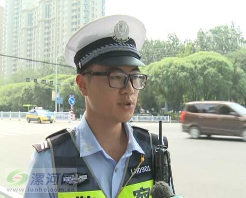 漯河市交警支隊(duì)交通秩序管理示范大隊(duì)交警李林鵬:我和同事張龍江巡邏到淞江路泰山路口,因?yàn)樘┥娇谑茄由鞃彛瑳]有設(shè)立崗?fù)?,?dāng)時(shí)過(guò)來(lái)的時(shí)候已經(jīng)停電了,所以紅綠燈不能用。