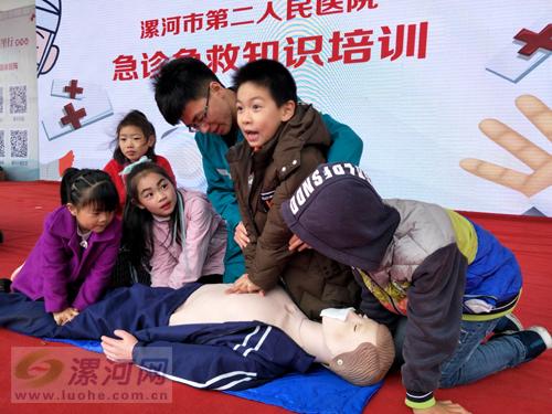 4月22日下午,漯河市二院急救人員在“書香中國萬里行漯河站”活動現(xiàn)場,為百余名漯河日報社小記者講解怎樣撥打120急救電話,有人暈倒應(yīng)該怎么處理?心肺復(fù)蘇等急救知識。