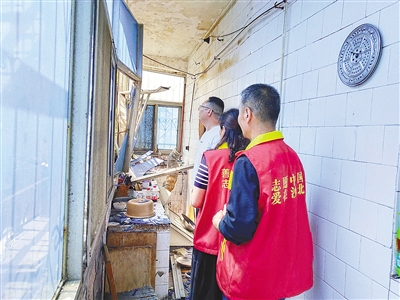 社區(qū)工作人員在劉阿姨家中查看。記者 吳艷敏 攝