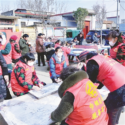 當(dāng)天一大早,45名巾幗志愿者帶著灶具、面粉、鮮肉、蔬菜等物品來(lái)到了陳東村村民廣場(chǎng)上。她們和面、剁餃子餡忙得熱火朝天。沒(méi)多久,一碗碗熱氣騰騰的餃子便出鍋了。隨后,志愿者們把餃子分發(fā)給到場(chǎng)的老人和孩子,還發(fā)放了年歷、對(duì)聯(lián)、紙抽等禮品,并為放學(xué)歸來(lái)的兒童送上一個(gè)個(gè)精美的書包。