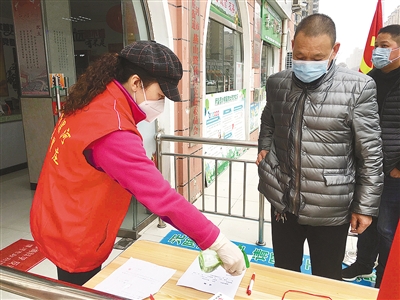 居民辦業(yè)務(wù)填表前,李艷杰先對(duì)筆消毒。