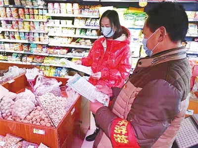 (記者 潘麗亞)2月1日上午,在市區(qū)太行山路,郾城區(qū)龍塔街道和平路社區(qū)黨員志愿者韓啟州正在給沿街商戶發(fā)放疫情防控知識(shí)宣傳單。