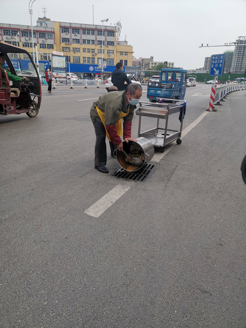 五一路附近餐飲店員工向城市污水管網(wǎng)內(nèi)亂倒泔水。