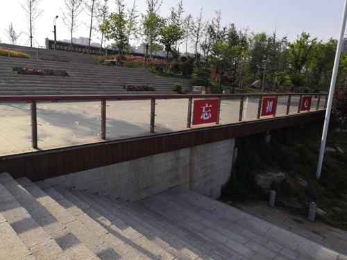 牡丹江路大橋南,新建的河堤?hào)|岸上,不忘初心,變成了忘初心。