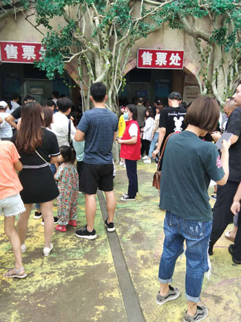 十月一日,市神州鳥園志愿者引導(dǎo)游客排隊購票,做文明旅游的踐行者和傳播者。
