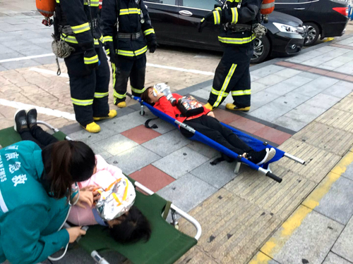 在演練總指揮發(fā)出“突發(fā)火災(zāi)應(yīng)急演練開(kāi)始”的指令后,應(yīng)急救援演練拉開(kāi)帷幕。市二院急診科接到火災(zāi)報(bào)警電話(huà)后,迅速啟動(dòng)突發(fā)事件醫(yī)療急救應(yīng)急預(yù)案,進(jìn)入應(yīng)急狀態(tài)。急診科主任李劍穎帶領(lǐng)住院醫(yī)師張蓓蓓、主管護(hù)師張靜以及救護(hù)車(chē)司機(jī)馮河林接到調(diào)度電話(huà)立即帶著急救藥品、器械,趕赴現(xiàn)場(chǎng)。在消防隊(duì)員將傷員轉(zhuǎn)移到安全地帶后,迅速檢查了3名傷員的受傷情況,按照檢傷分類(lèi)要求,進(jìn)行現(xiàn)場(chǎng)救治,快速給予傷員吸氧,并安撫受傷人員。隨后,傷者被送上救護(hù)車(chē),安全轉(zhuǎn)運(yùn)到醫(yī)院進(jìn)一步治療。7時(shí)10分,整場(chǎng)演練順利結(jié)束。