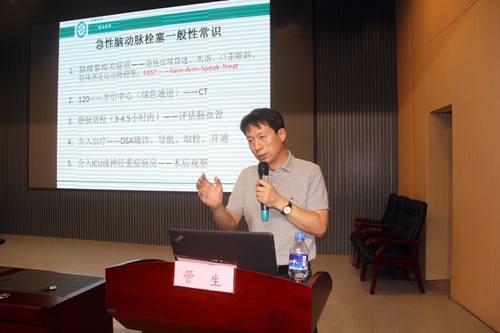 隨后,鄭州大學(xué)第一附屬醫(yī)院心血管內(nèi)科專家李凌教授熱情洋溢地講述了《急性左心衰診治進展》,并結(jié)合自身經(jīng)驗及最新心衰指南,深入淺出地介紹了“急性左心衰”的診療思路,詳細地論述了該病應(yīng)如何去治?如何去防。神經(jīng)介入科專家管生教授幽默風(fēng)趣地從神經(jīng)介入方向介紹了《心血管醫(yī)生應(yīng)該了解的腦血管那些事》,并提出了“心腦同診、心腦同治”的新思路,為我市心腦血管的發(fā)展及防治提供了新的借鑒與思考。最后,心血管內(nèi)科專家陶海龍教授細致、全面地介紹了“房顫的規(guī)范化治療”,他從“歷年指南房顫的治療要點、經(jīng)典病例及房顫的介入治療”等方面闡釋了相關(guān)問題,為大家對房顫的治療及卒中的預(yù)防提供了新的思考。