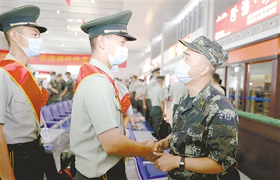 在漯河西站,退伍老兵和戰(zhàn)友道別。