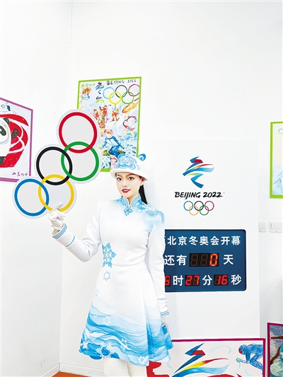 2月4日,張曦丹在北京冬奧會(huì)開幕倒計(jì)時(shí)牌前拍照。照片由受訪者提供