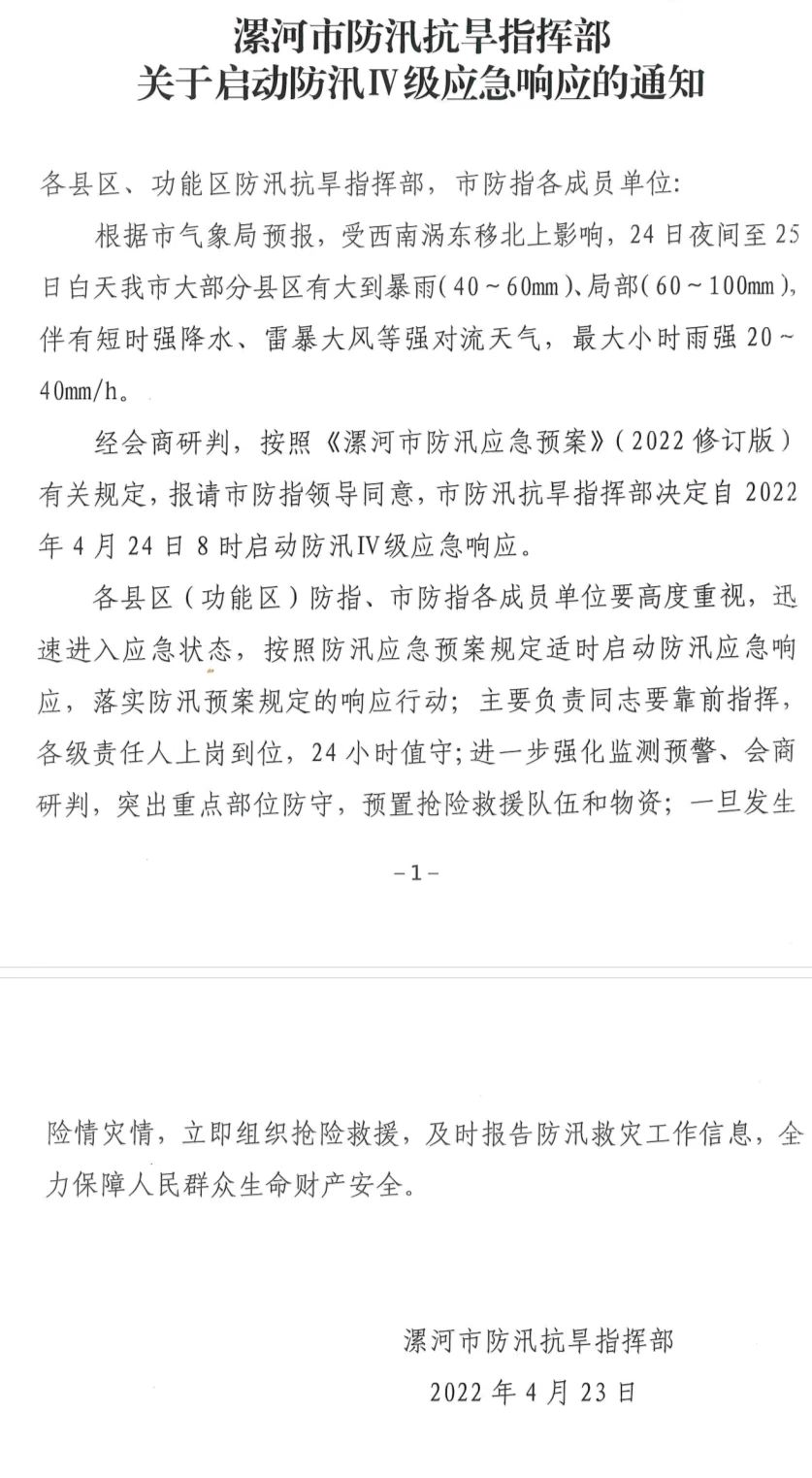 漯河發(fā)布啟動應急響應緊急通知!