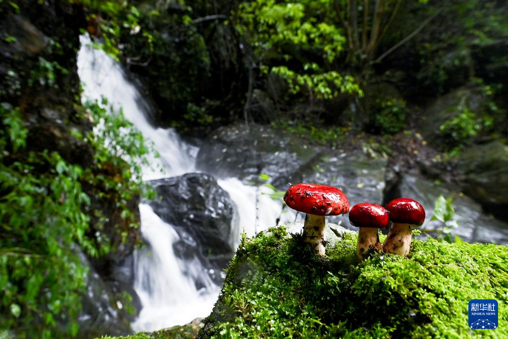 7月2日,在云南省大理白族自治州南澗彝族自治縣公郎鎮(zhèn)自強(qiáng)村無(wú)量山中拍攝的大紅菌。