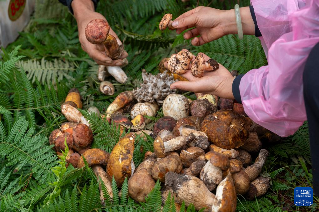 6月30日,云南省大理白族自治州洱源縣三營(yíng)鎮(zhèn)士登村村民挑選牛肝菌。