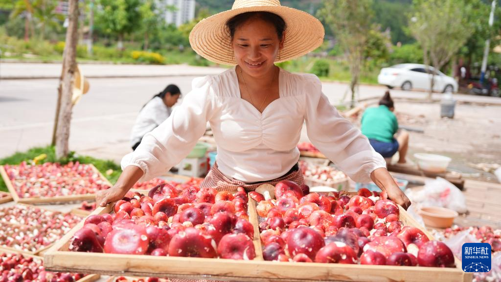 7月2日,在云南省普洱市鎮(zhèn)沅彝族哈尼族拉祜族自治縣恩樂(lè)鎮(zhèn)一家野生菌收購(gòu)合作社,工人們忙著將野生紅菌清洗干凈晾曬。