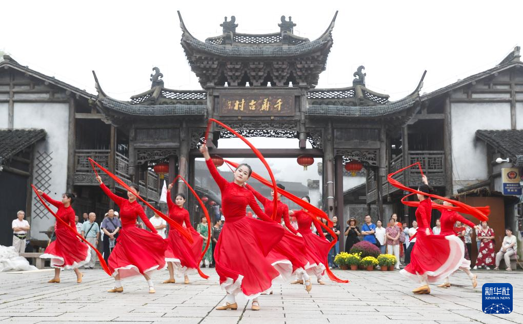 9月27日,演員在江蘇省句容市寶華山國(guó)家森林公園內(nèi)的千華古村為游客表演節(jié)目。