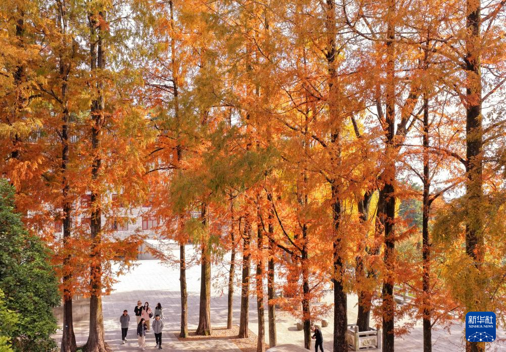 11月19日,游客在湖南省衡陽市南岳衡山風景區(qū)賞景游玩(無人機照片)。