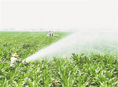 7月8日,召陵區(qū)老窩鎮(zhèn)楊莊村田間,村民在給玉米澆水。近期,我市持續(xù)高溫少雨,農(nóng)田遭受不同程度旱情。目前,正值玉米生長(zhǎng)關(guān)鍵時(shí)期,我市積極組織各方力量澆水抗旱。